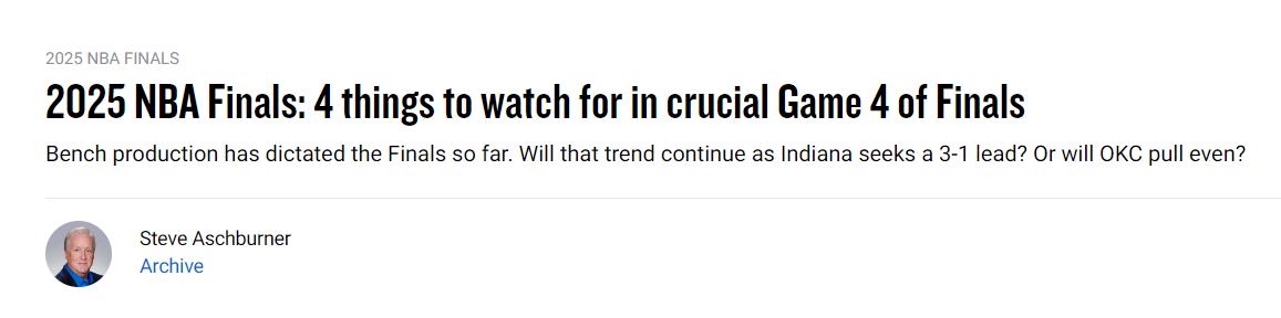 若系列赛中真有疲劳显现的时刻,很可能是G4。相比其他场次间隔72小时,本场仅在G3后48小时进行。两队都有理由关注体能状况——